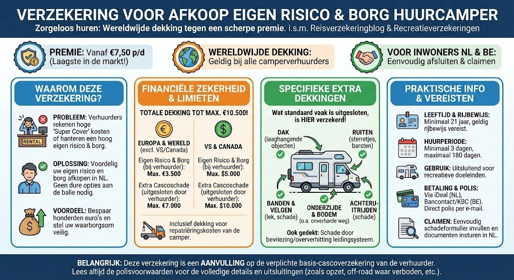 Let op: Je bent op deze pagina terechtgekomen omdat wij de samenwerking met per 01-12-2025 hebben beëindigd. Wij hebben een nieuwe partner, Recreatieverzekeringen, die een Eigen Risico Verzekering Autohuur en Camperhuur aanbiedt tegen betere voorwaarden en een gunstigere premie!