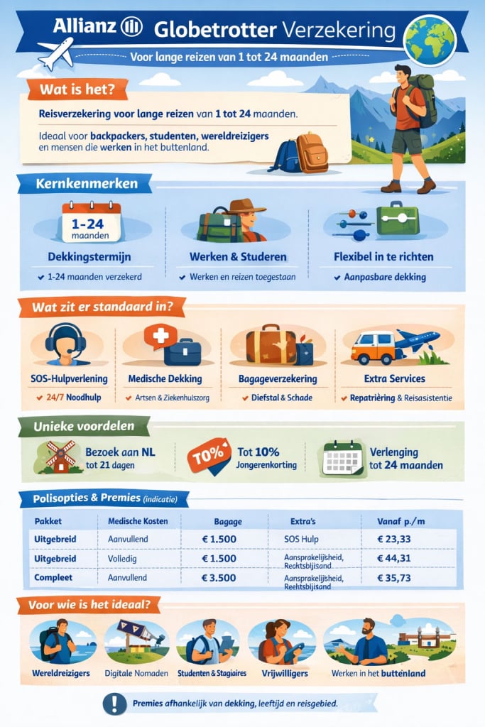 - De Allianz Globetrotter Verzekering is ideaal voor lange reizen van 1 tot 24 maanden.