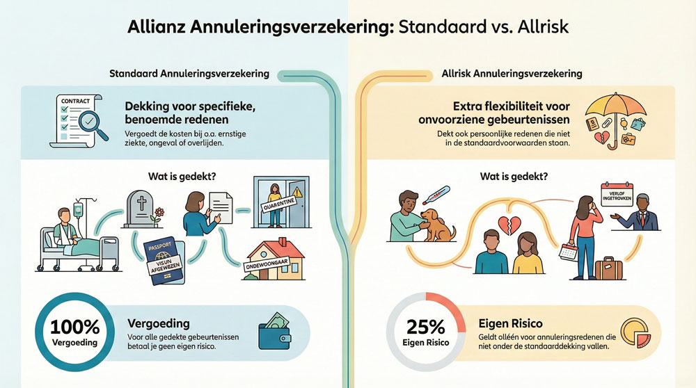 All risk annuleringsverzekering van Allianz voor extra flexibiliteit en zekerheid in vergelijking met de standaard annuleringsdekking!