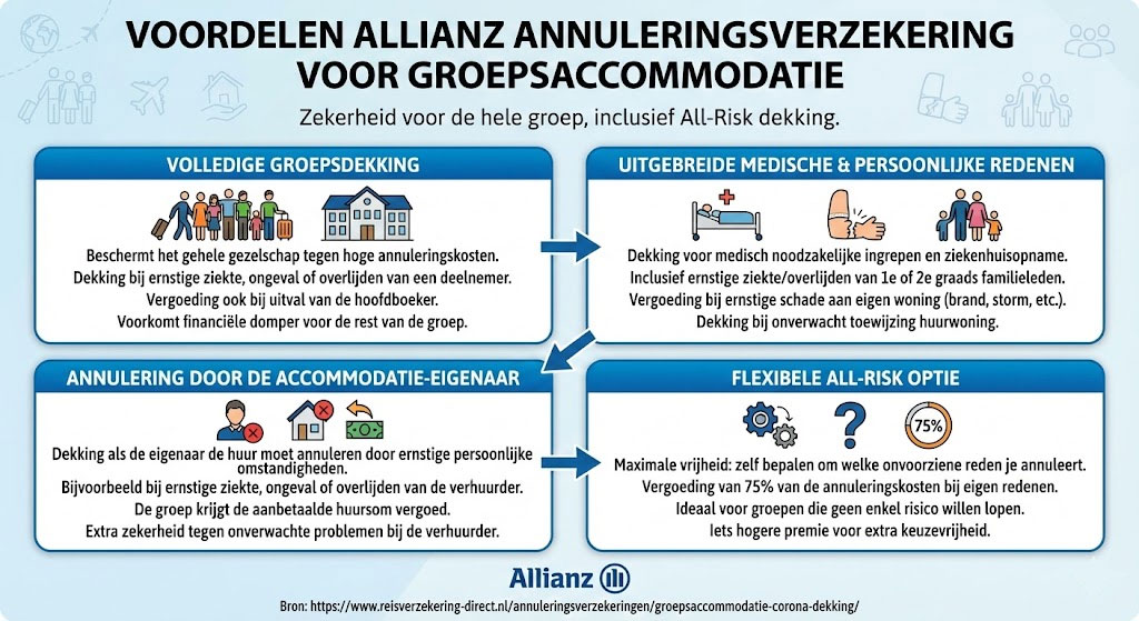 Allianz annuleringsverzekering voor een groepsaccommodatie voor extra zekerheid