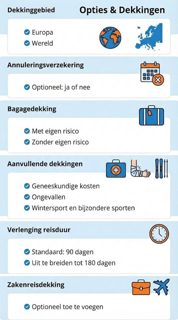 - Kies het juiste dekkingsgebied (Europa of wereld) en een passende maximale reisduur.